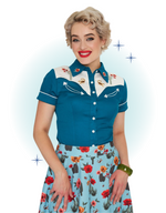 This blue and white Cactus Floral western-style blouse will charm you with its cactus and flower embroidery and white piping details. Perfect for a western event or simply to enhance your everyday look, its cotton fabric will keep you comfortable in any situation.