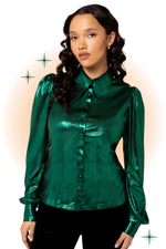 The Gigi blouse is light and shiny. It's perfect for going dancing or just being comfortable and chic for hours!