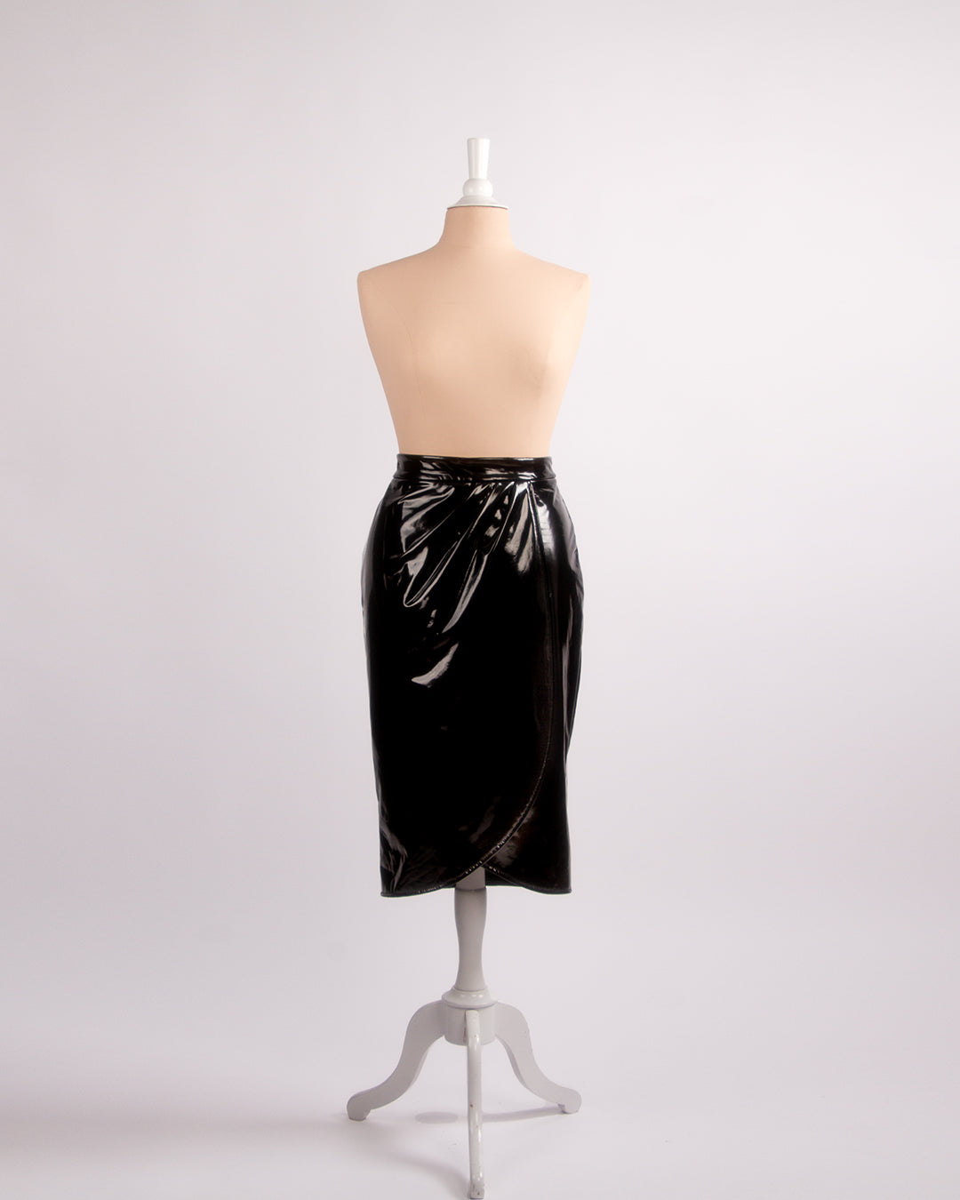 Unleash your inner diva with our black vinyl Marie skirt, available in petite and plus sizes! This dramatic piece features a panel that flatters your figure while keeping you comfortable. Its black vinyl-effect shade adds a mysterious touch to your outfits, from morning to night. Get ready to turn heads.