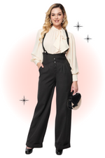 With its 30s inspired cut, the beautiful black Thelma pants with removable suspenders have everything you need to make you look fabulous! Made from a comfortable fabric blend, these pants have a very high waist with a wide fitted band, and wide legs that give them that masculine look that we love so much! With its large pockets and rolled edge, this garment is an essential item to have in your retro / vintage wardrobe.