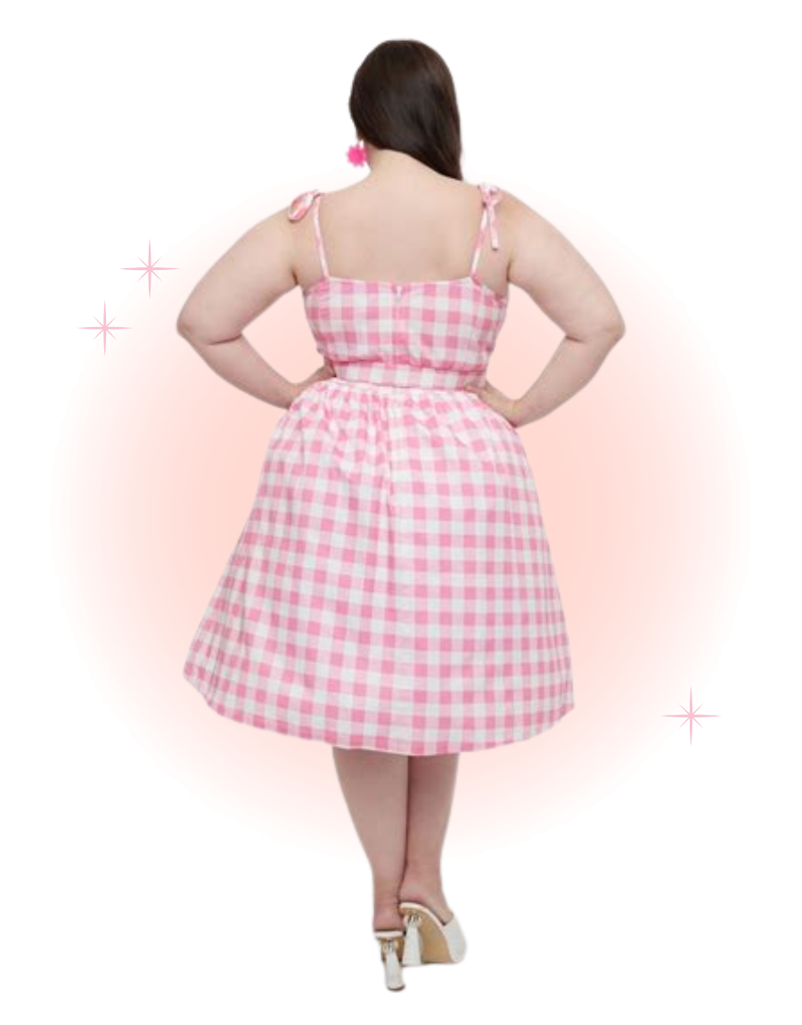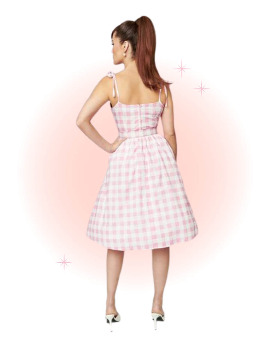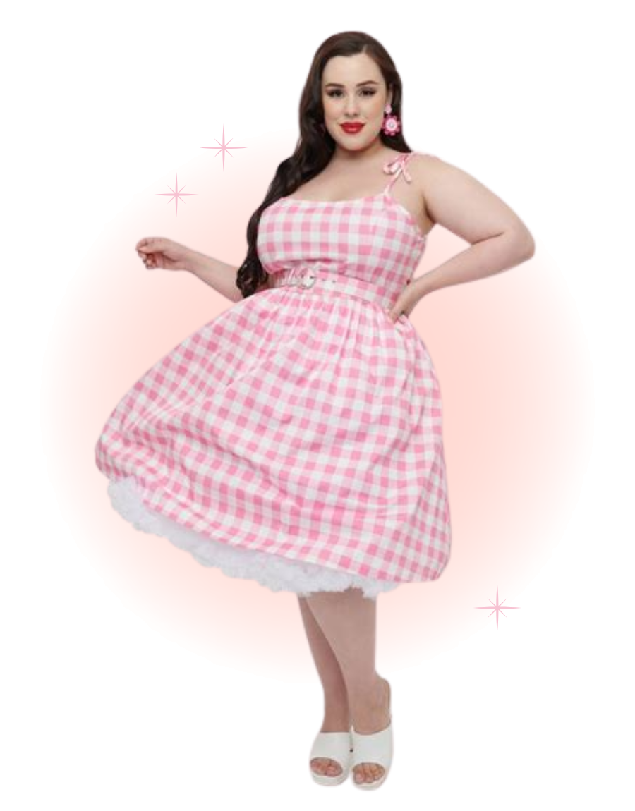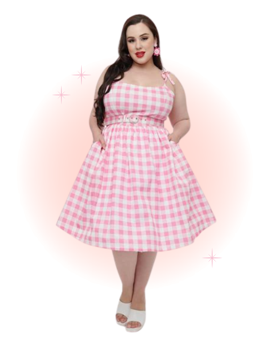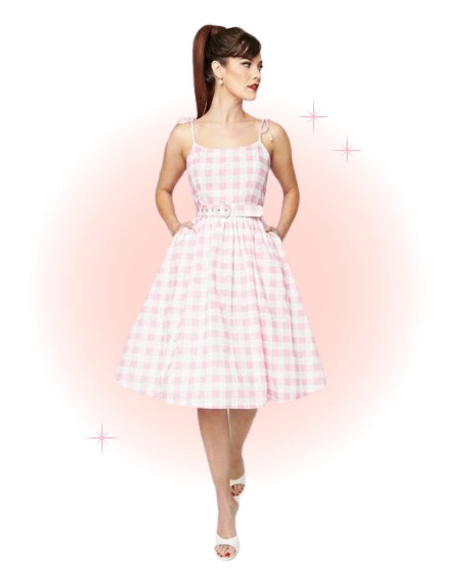 A lovely retro piece, the Bobbie swing dress is crafted from a stunning pink gingham fabric in lightweight cotton, making it a must-have for your vintage wardrobe. This 1950s favorite features princess seams on the bodice and adjustable skinny straps, which offer a fabulous, feminine fit. The waist cinches your figure with a matching belt, while the dramatic swing skirt falls to the knees.