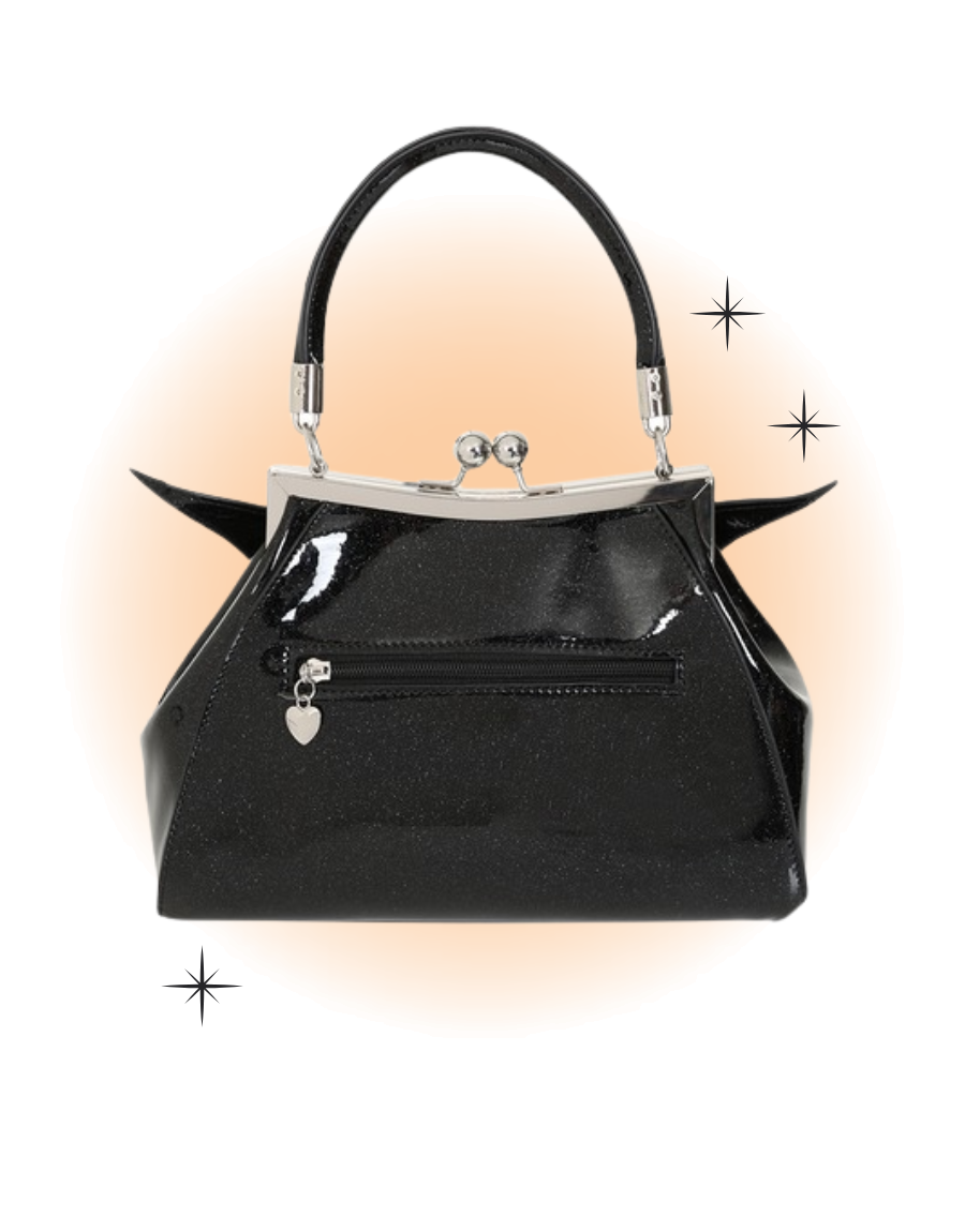 This Elvira Shiny Black handbag is perfect for carrying your essentials in style. It can be carried by hand and has a removable strap for wearing over the shoulder.