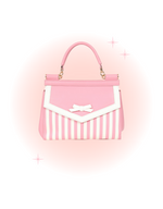 Banned Apparel's Ravello handbag captures nautical elegance with white stripes against a candy pink background and a refined bow on the front. Crafted from premium vegan leather, this classic maritime design features a detachable shoulder strap and an organized interior, perfect for sophisticated vintage lovers.
