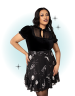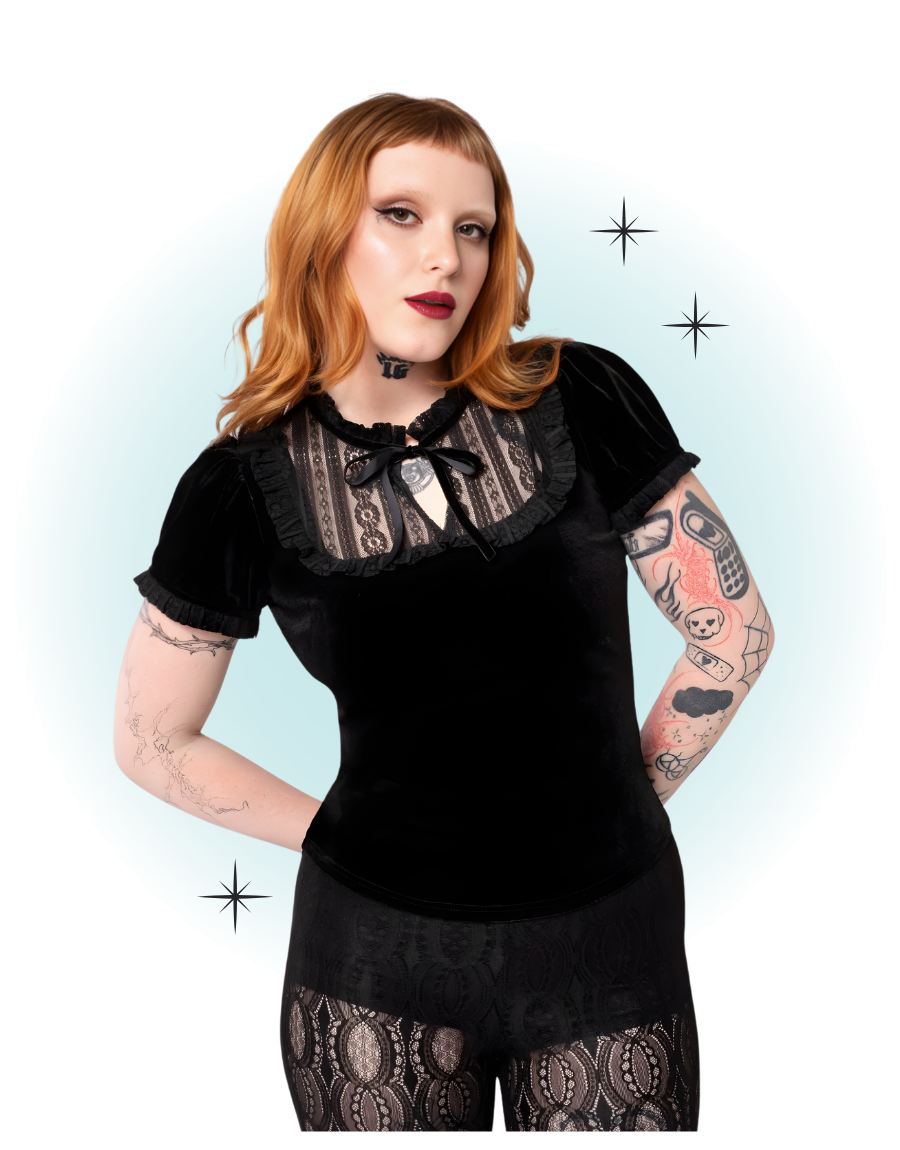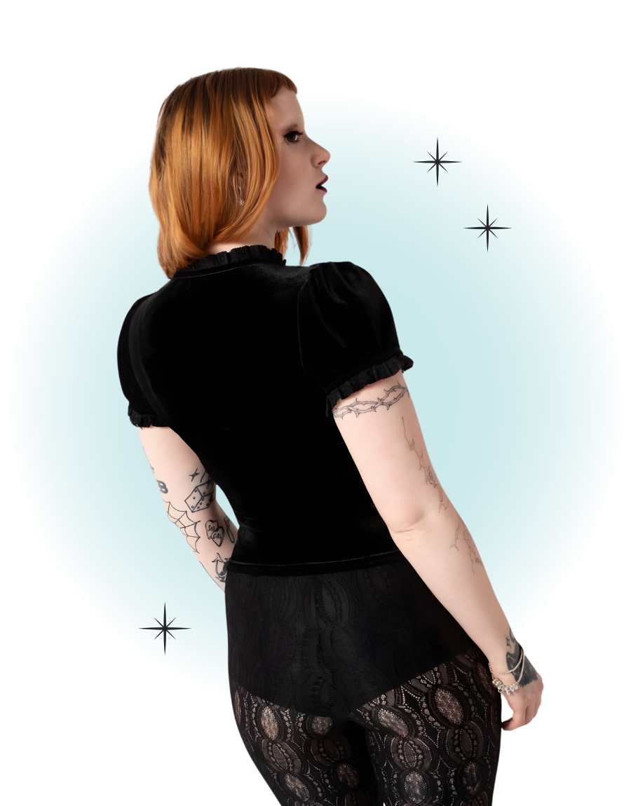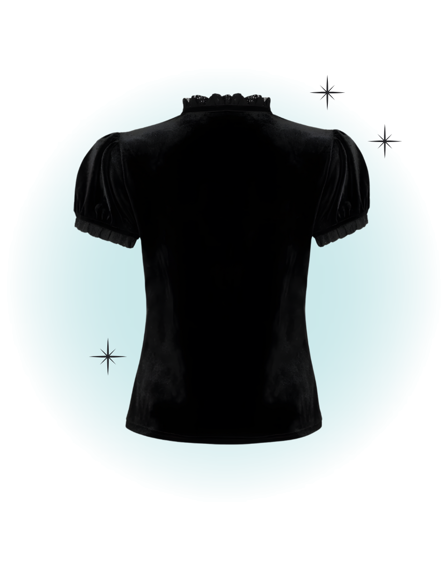Le top Mourning noir en velour mise sur une allure glamour et mystérieuse, avec une coupe flatteuse et un charme rétro irrésistible. Elle se porte aussi bien en soirée qu’au quotidien pour une touche d'élégance.