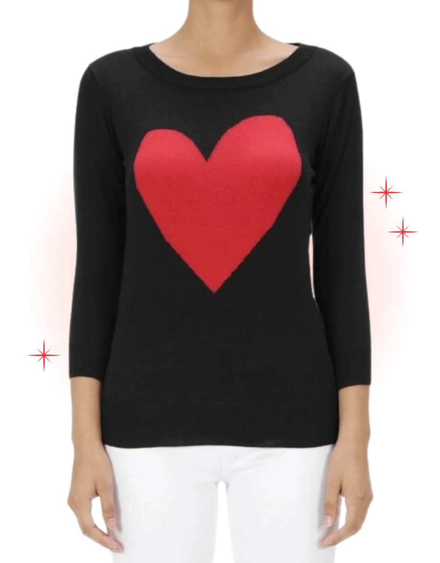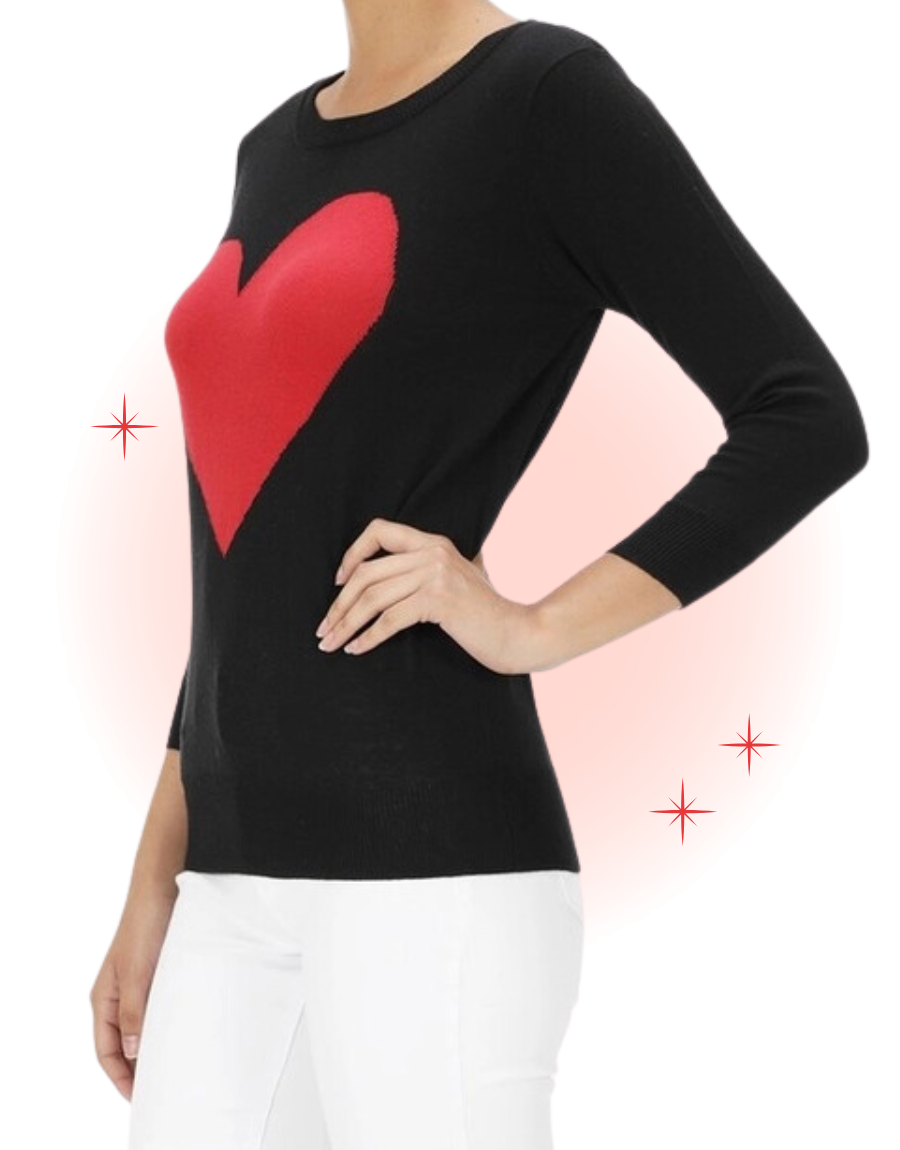 This soft 3/4 sleeve knit in bright colors is perfect for any beautiful occasion. Its beautiful heart pattern will charm you with its timeless simplicity.