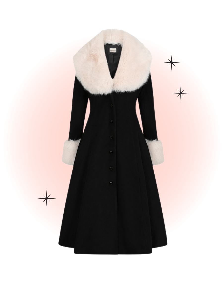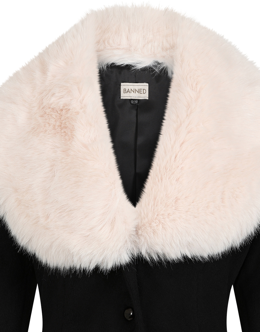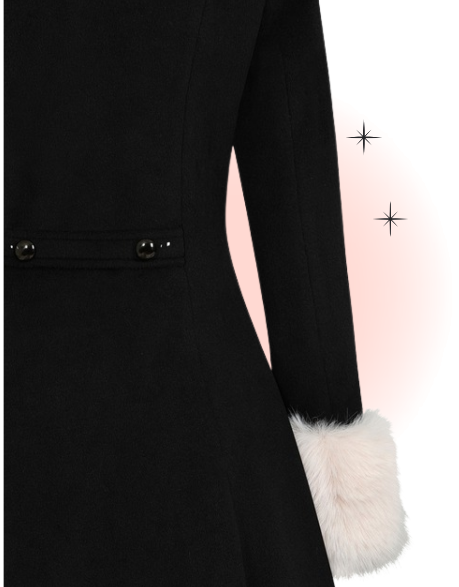 Ce magnifique manteau Martha noire est la pièce qu'il vous faut pour accueillir le temps froid cet hiver avec classe. Son col et ses manchons de fourrures s'enlève pour un tout autre style ou pour le lavage. Sa coupe évasée donne aussi une silhouette flatteuse. Préparez-vous à faire tourner les têtes.