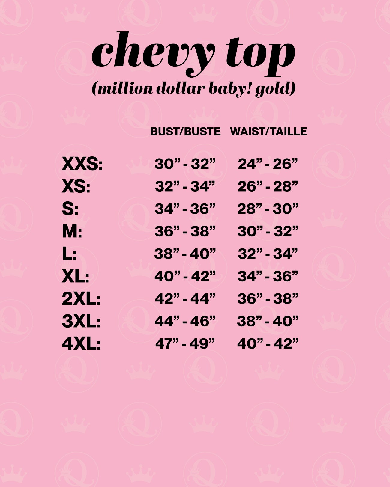 XXS : BUSTO/E : 30-32 en/en