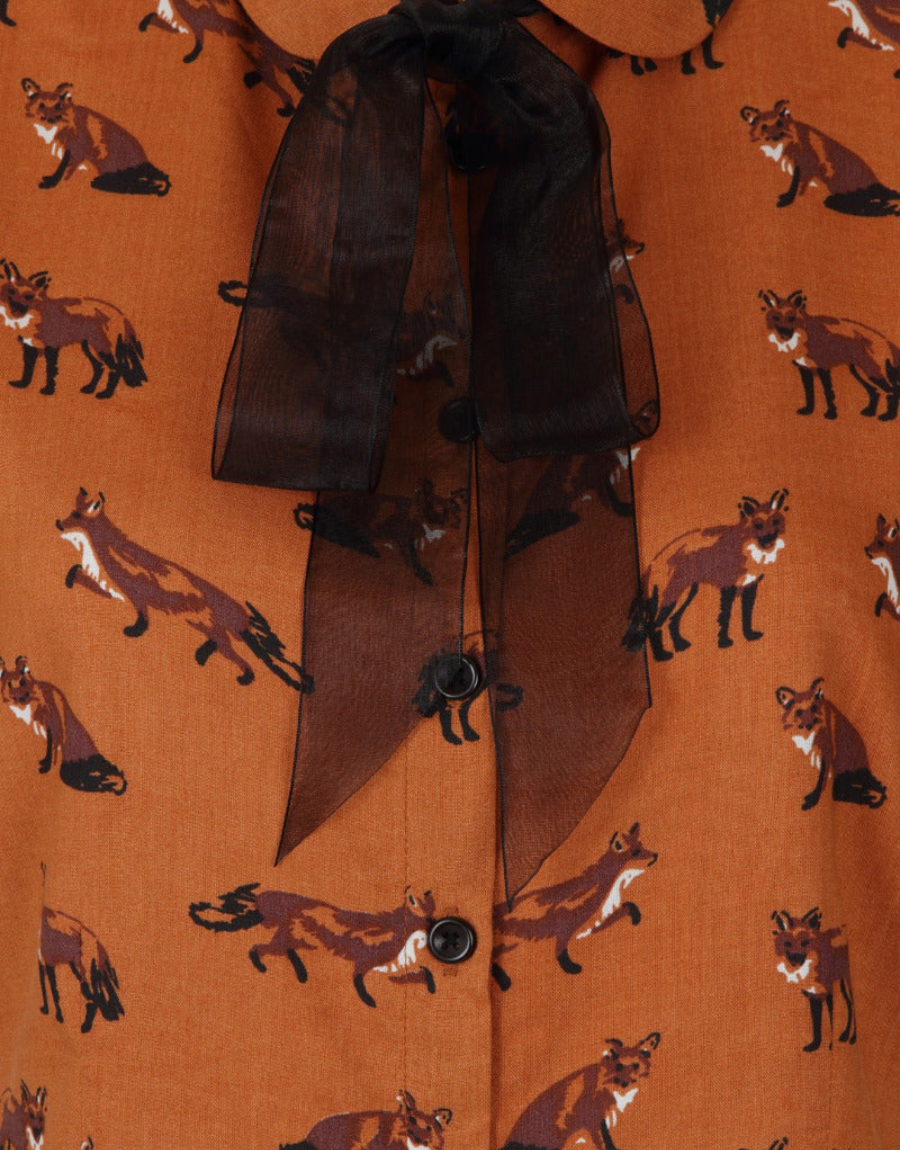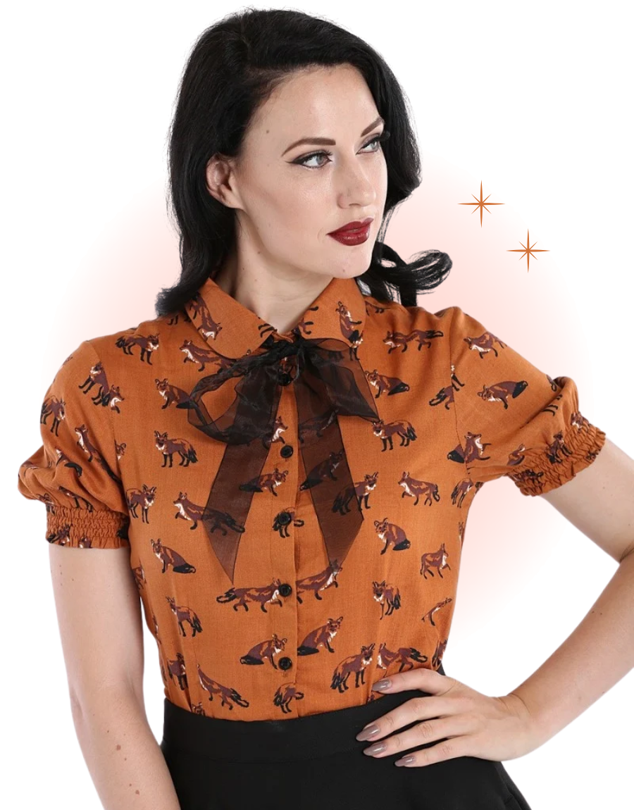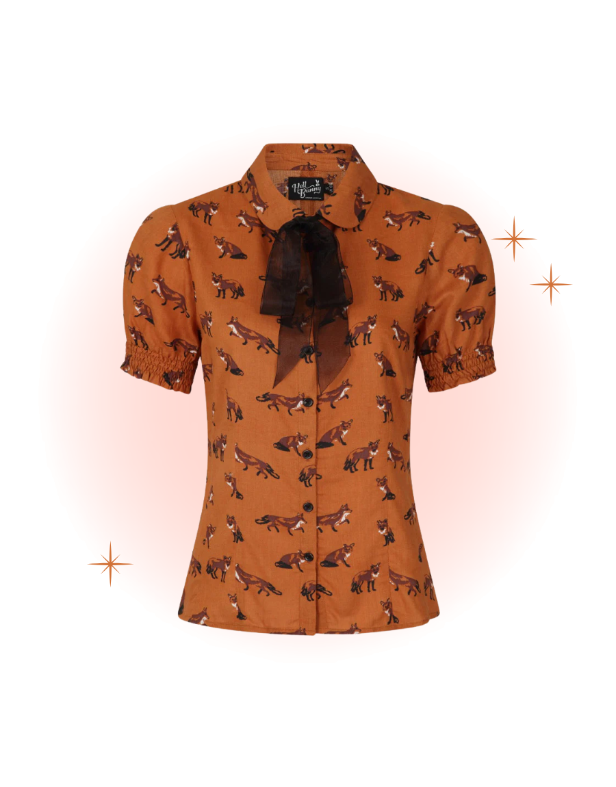 Ajoutez une touche espiègle à votre garde-robe avec la blouse Vixey brune. Ce haut féminin au charme rétro met à l’honneur un motif de mignons petits renards, parfait pour les amoureuses de nature et de style original.