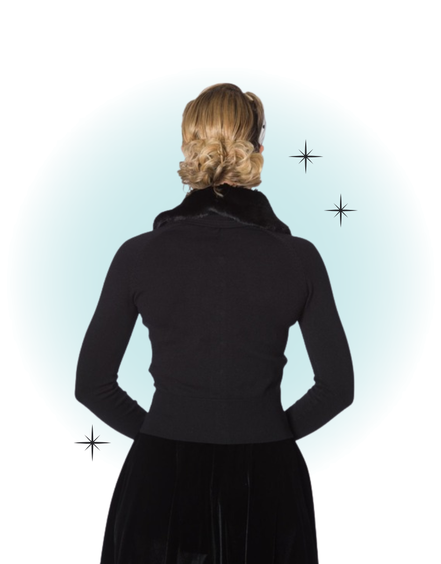 Ce cardigan vert est doté d'adorables boutons en forme de nœud et d'un col en fausse fourrure. Ajoutez une touche vintage à votre tenue avec cet adorable cardigan.