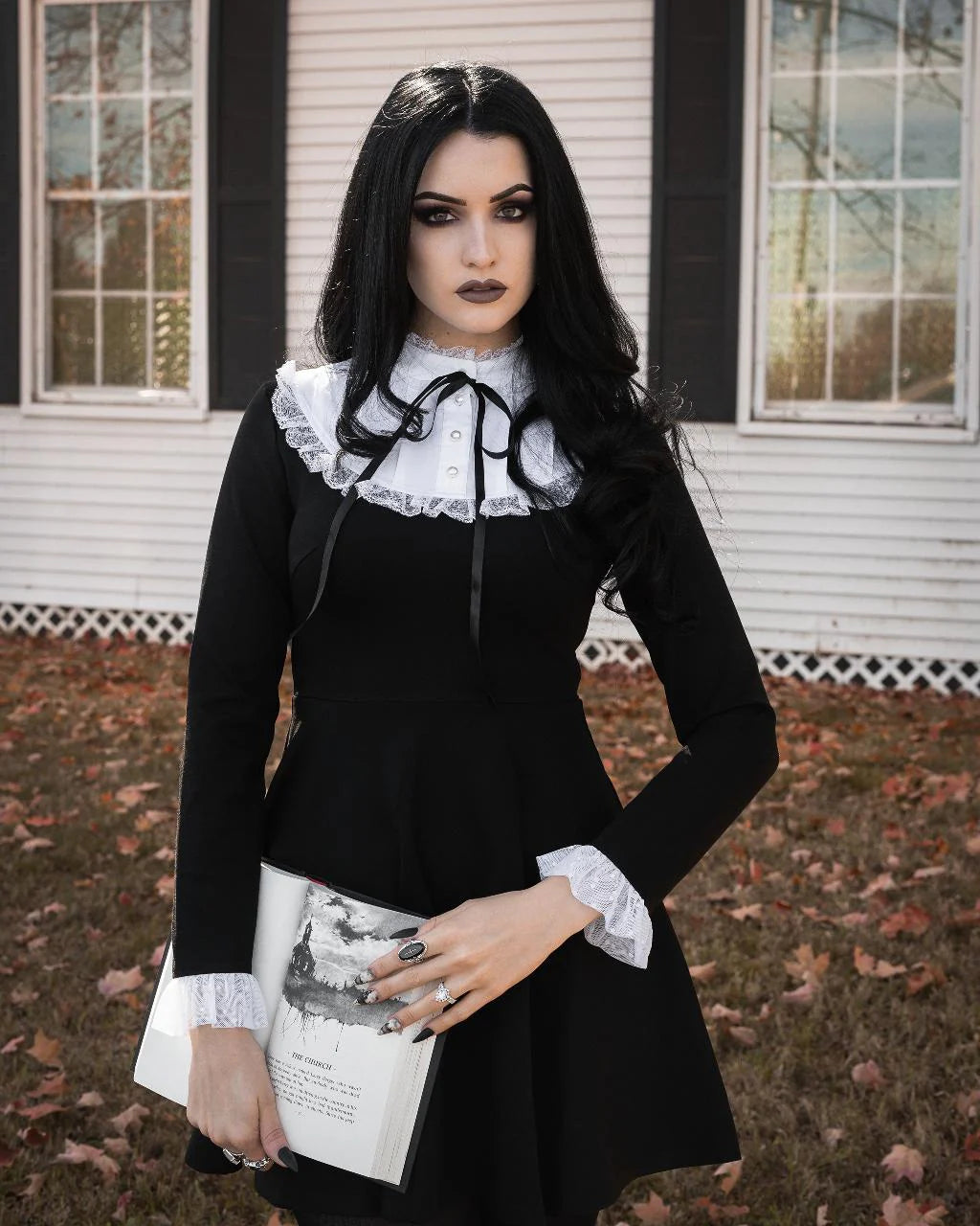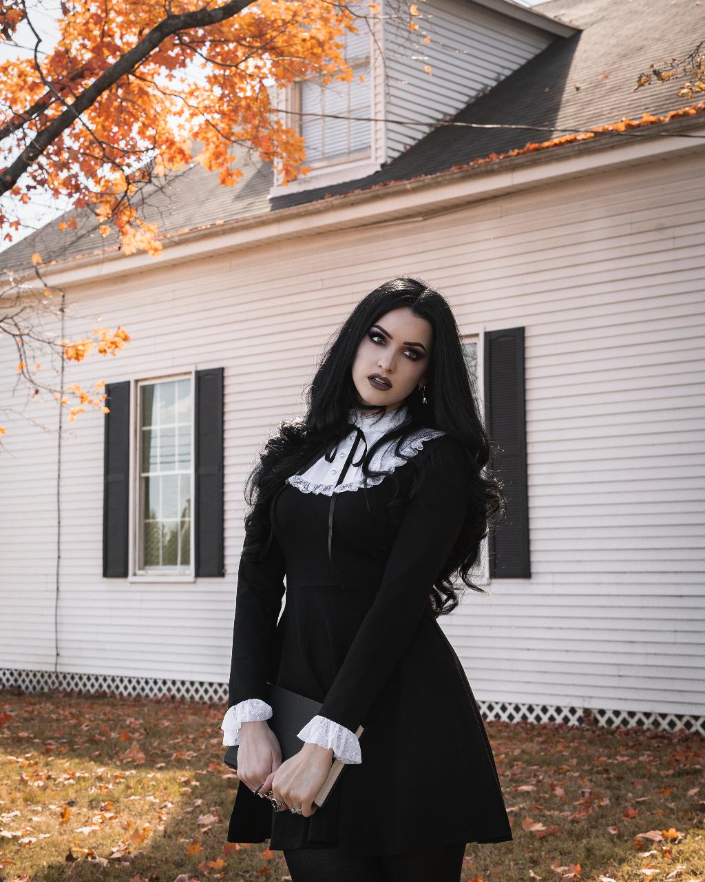 À la fois mystérieuse et délicate, la robe Salem s'inspire de la mode du XVIe siècle. Avec son encolure et ses manches à volants, son nœud fixe et sa taille cintrée, cette robe traduit l'opulence emblématique de cette époque en un vêtement à la fois moderne et intemporel. La robe Salem est dotée de faux boutons et d'une fermeture éclair fonctionnelle dans le dos, ce qui permet de l'enfiler et de la retirer en un clin d'œil.