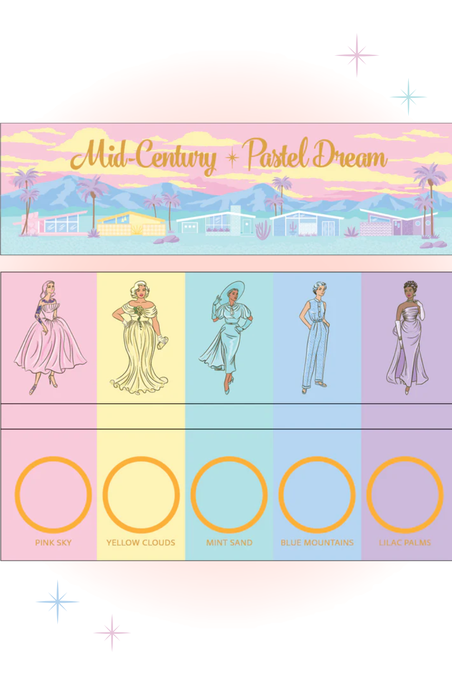 Utilisez cette palette chaque fois que vous avez besoin d'un regain d'optimisme et entrez dans notre « rêve pastel du milieu du siècle ».
