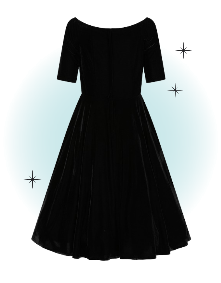 Cette jolie robe en velours noir est la robe qu'il vous faut pour avoir de la classe dans vos soirées spéciales. La Amelia est un classique que vous pourrez remettre encore et encore et elle ne se démodera jamais.