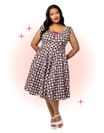La robe évasée Leonie Vichy de style des années 50 ne manquera pas de faire fondre votre cœur. La robe présente une ligne de poitrine évasée avec bordure élastique etdes manches courtes élastiques, permettant d'avoir un look avec les épaules couvertes ou découvertes. La taille ajustée et la jupe en cercle vous donnera un style romantique et gracieux.
