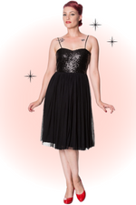 Faites-vous plaisir avec cette robe swing étincelante. En paillettes et en tulle, la robe Retro Love brille et scintille pendant que vous dansez, pour que tous les regards se tournent vers vous. Le décolleté en cœur et les bretelles en satin montrent des pans de peau prêts pour la fête, tandis que le corsage en paillettes ajoute un peu de piquant, la taille se resserrant pour montrer vos formes et la jupe en tulle s'évasant pour créer un halo d'étincelles tandis que vos jambes parlent d'elles-mêmes.