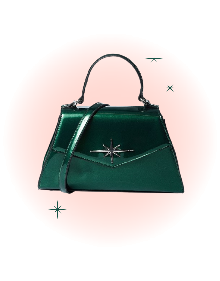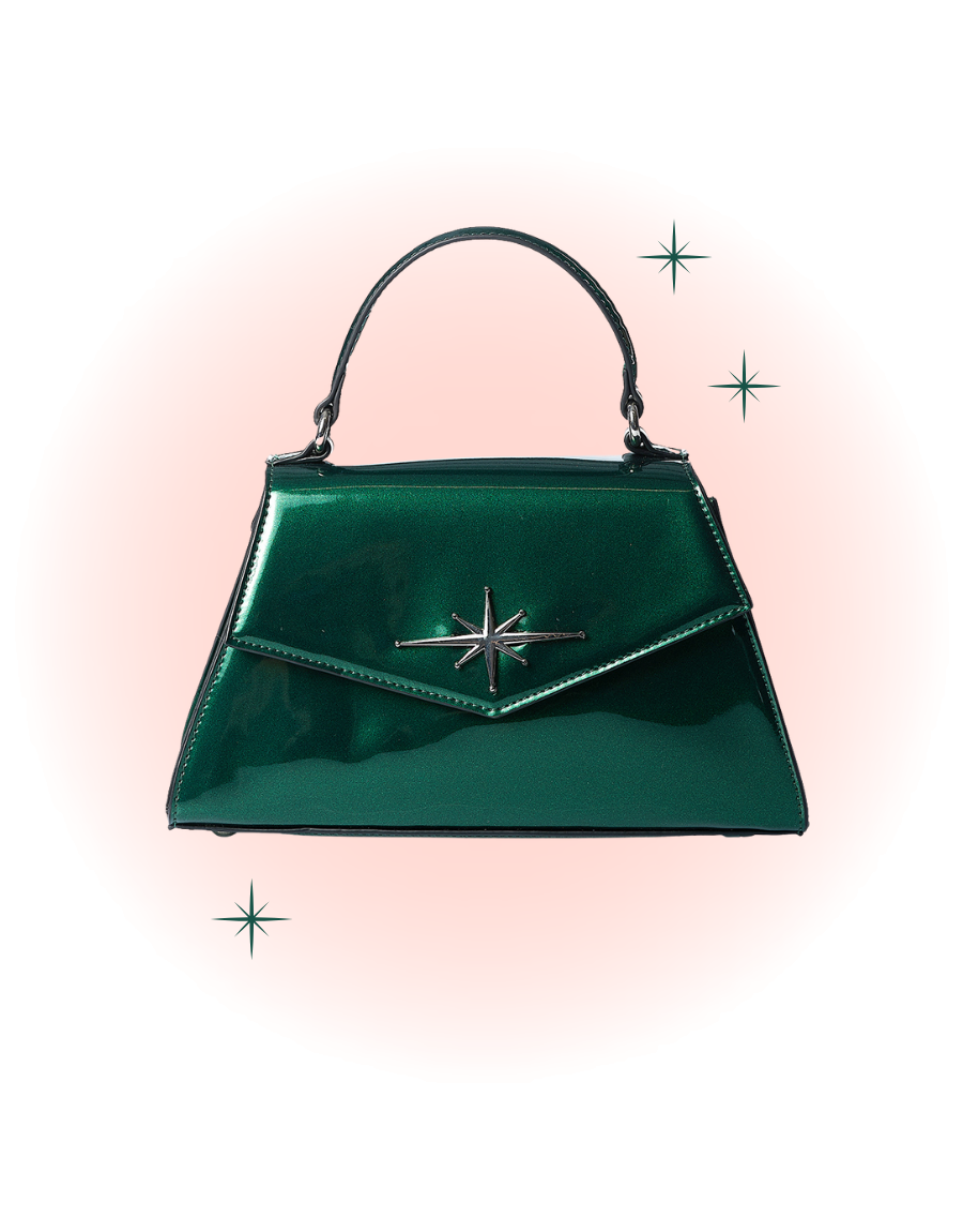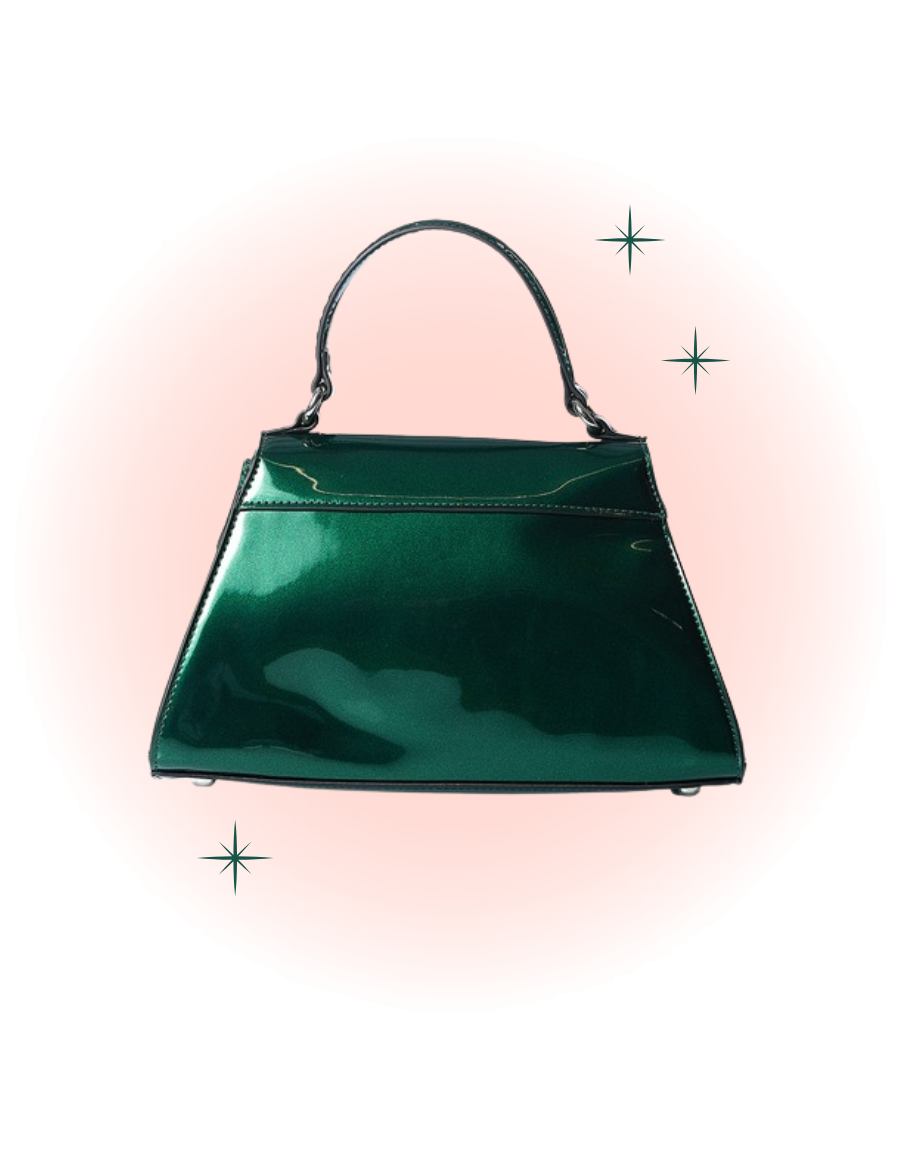 Ce sac à main Dance the night away vert brillant est parfait pour transporter votre nécessaire tout en ayant du style. Elle peut être portée à la main en plus d'être munie d'une ganse amovible pour la porter à l'épaule.